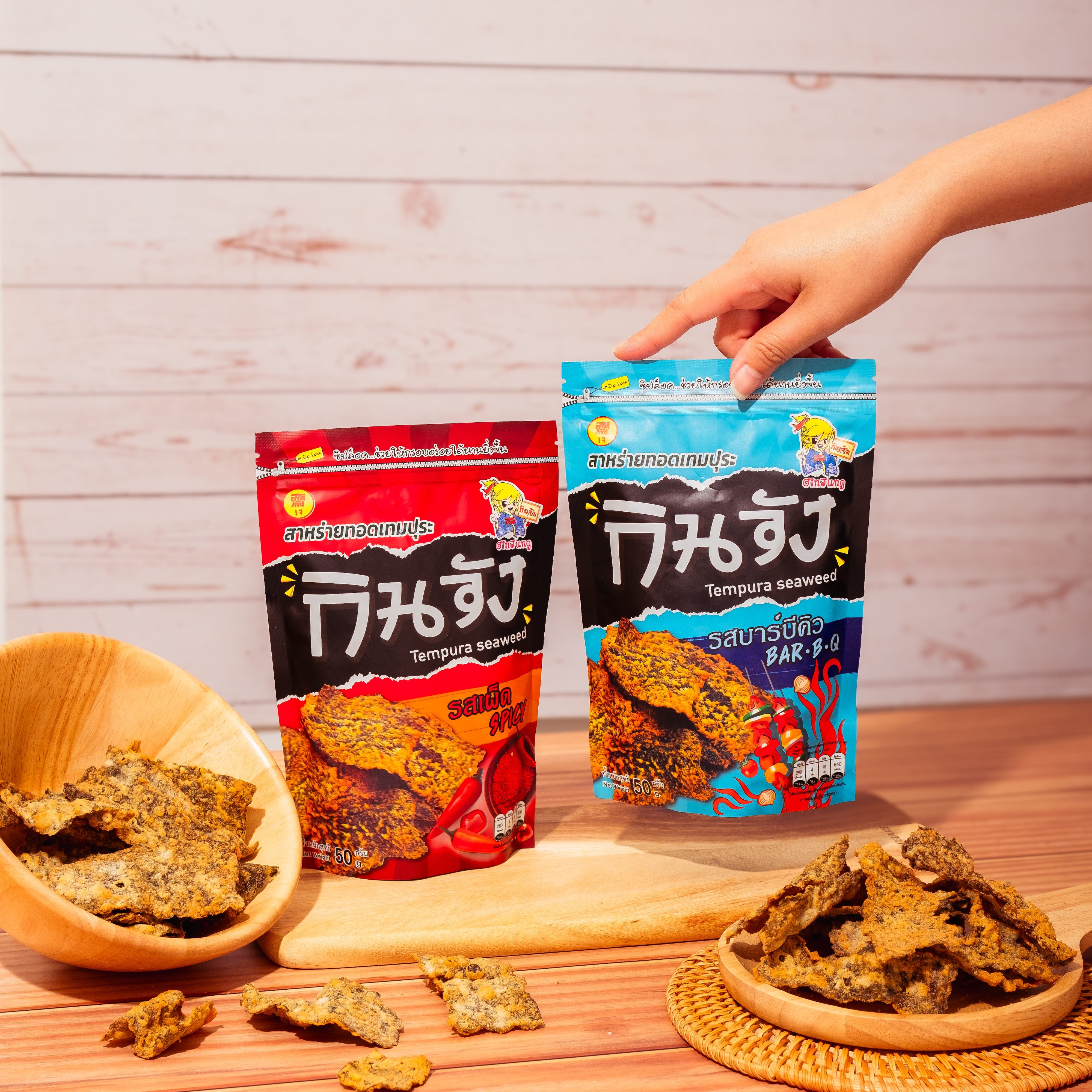 สาหร่ายแปรรูปแบรนด์ "กินจัง" มอบประสบการณ์ความอร่อยที่มากกว่าของว่างทั่วไป ด้วยสาหร่ายทะเลคุณภาพเยี่ยม ผ่านกรรมวิธีการผลิตที่ได้มาตรฐาน ผลิตภัณฑ์ของเราอุดมไปด้วยไอโอดีนและโปรตีน ช่วยเสริมสร้างสุขภาพให้แข็งแรง เหมาะสำหรับทุกเพศทุกวัย ไม่ว่าจะเป็นสาหร่ายทอดเทมปุระ, สาหร่ายอบกรอบชนิดม้วนและผลิตภัณฑ์อื่น เราก็มีให้คุณเลือกอร่อยได้ตามใจชอบ