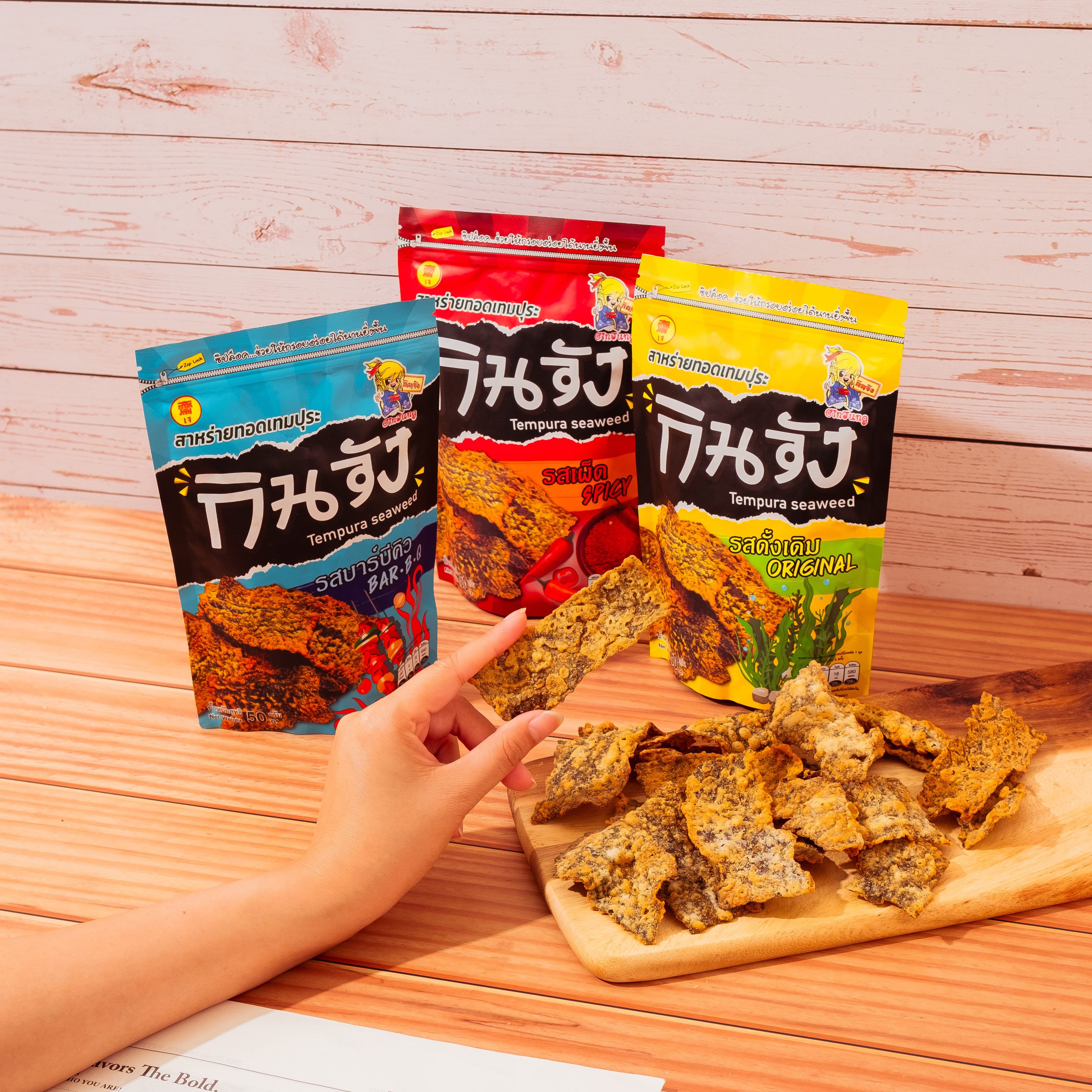 สาหร่ายแปรรูปแบรนด์ "กินจัง" มอบประสบการณ์ความอร่อยที่มากกว่าของว่างทั่วไป ด้วยสาหร่ายทะเลคุณภาพเยี่ยม ผ่านกรรมวิธีการผลิตที่ได้มาตรฐาน ผลิตภัณฑ์ของเราอุดมไปด้วยไอโอดีนและโปรตีน ช่วยเสริมสร้างสุขภาพให้แข็งแรง เหมาะสำหรับทุกเพศทุกวัย ไม่ว่าจะเป็นสาหร่ายทอดเทมปุระ, สาหร่ายอบกรอบชนิดม้วนและผลิตภัณฑ์อื่น เราก็มีให้คุณเลือกอร่อยได้ตามใจชอบ